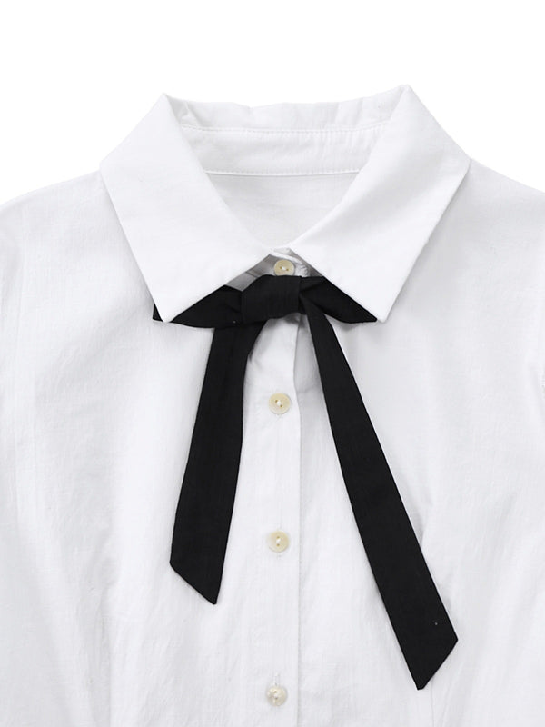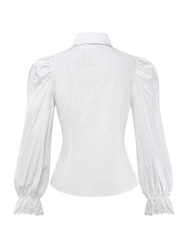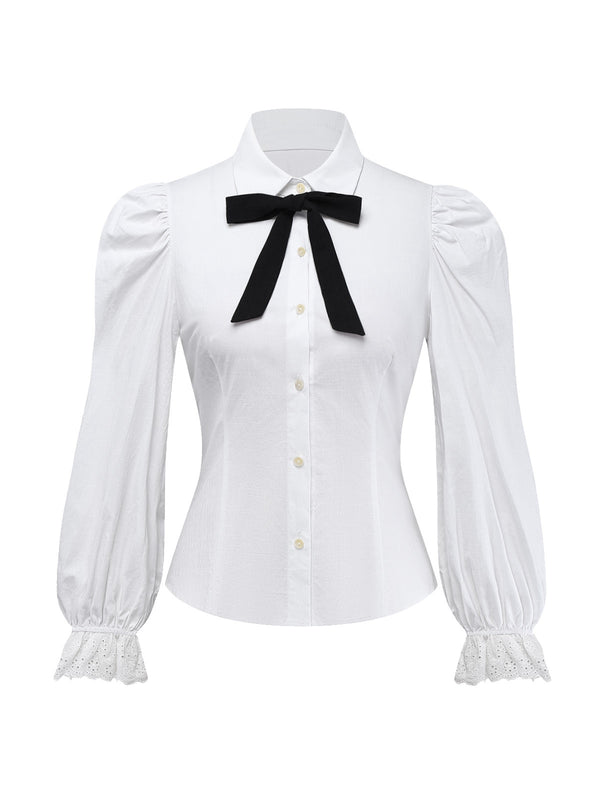Chemisier blanche à manches bouffantes et nœud années 1960 – Retro Stage-France