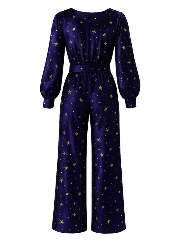 [Prévente] Combinaison bleue foncé en velours et étoiles col en V années 1950