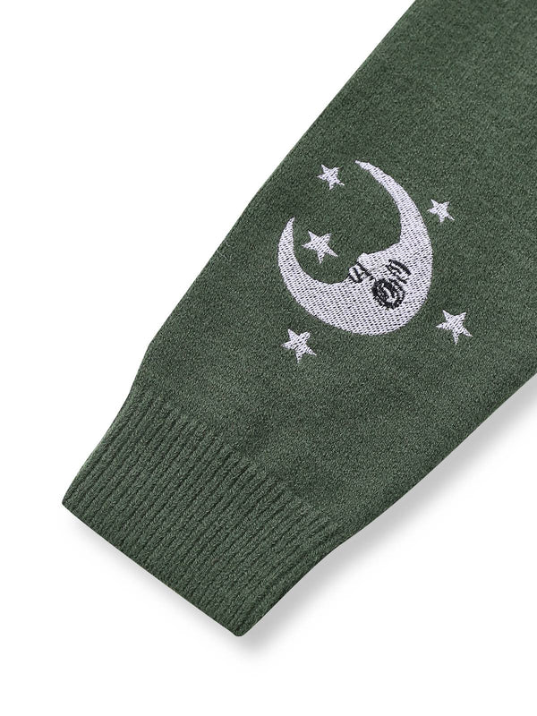 Gilet tricoté à manches lanternes brodées soleil et lune des années 19 – Retro Stage-France