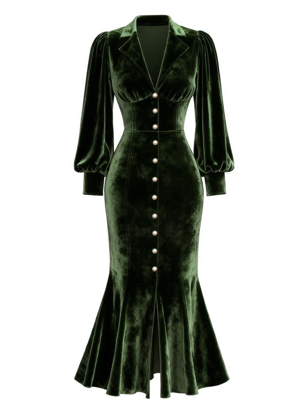 [Prévente] Robe sirène en velours rouge ornée de perles manches lanter – Retro Stage-France